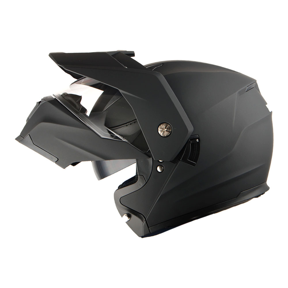 Advanced Modular/Flip up Dual Sport and Dual Lens Design (inner smoked lens/outer clear shield); Light Weight Durable Aerodynamic Thermoplastic Alloy Shell; Beautiful glossy UV protective finish;